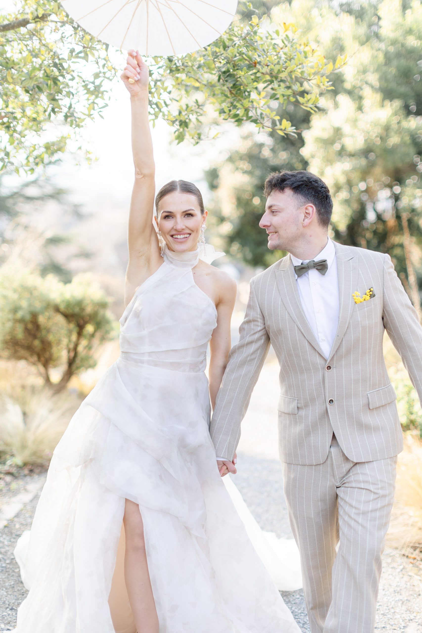 Im Botanischen Garten angekommen, setzte das beeindruckende Kuppelgewächshaus einen imposanten Akzent. Umgeben von exotischen Pflanzen entstanden stilvolle und faszinierende Aufnahmen, in denen jedes Detail perfekt harmonierte: Das elegante Brautkleid, der fein abgestimmte Schmuck, das nostalgische Schirmchen – alles fügte sich zu einer visuellen Erzählung voller Schönheit und Emotionen.
