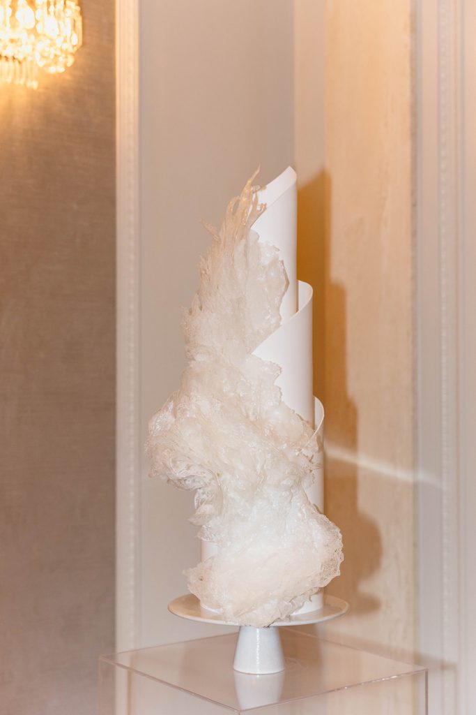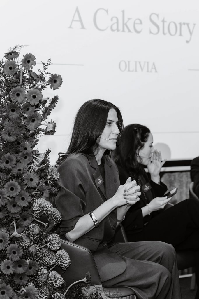 Olivia sprach über ihre Reise als Tortenkünstlerin und darüber, wie sie ihre Kreationen zu einem Ausdruck von Persönlichkeit und Stil macht. Als Künstlerin arbeitet sie mit Zuckerpaste, ihrem bevorzugten Medium für ephemere Kunst. Sie formt daraus Bewegung und Ausdruck und erzählt so Geschichten menschlicher Emotionen. Ihre Inspiration zieht sie aus Natur, Mode, Skulpturen, Keramik und Architektur. Olivia liebt es, Normen zu hinterfragen, Regeln zu brechen und neue Wege zu entdecken, um avantgardistische Statement-Wedding-Cakes zu schaffen. Mit über 20 Jahren Erfahrung in der Finanz- und Pharmabranche sowie in der Luxushotellerie bringt sie ein tiefes Verständnis für Qualität und Professionalität in ihre Arbeit ein. Ihre Tortenkunst wurde weltweit in renommierten Blogs wie The Lane, Brides, Green Wedding Shoes, Wedding Chicks, Junebug Weddings, Frieda Therés, Lovely Bride, Spina Bride und Riley & Grey vorgestellt. Ihre Kreationen sind in den bedeutendsten Schweizer Luxushotels wie dem Dolder Grand in Zürich, dem Bürgenstock Resort in Luzern, der Villa Honegg und dem Alpina Gstaad zu sehen gewesen, ebenso wie in zahlreichen Kunstgalerien und exklusiven Eventlocations. Besonders betonte Olivia, dass sie ausschließlich mit Brautpaaren arbeitet, denen die Hochzeitstorte wirklich wichtig ist, denn ihre Kreationen sind für sie weit mehr als nur ein Dessert – sie sind Kunstwerke und emotionale Symbole. Sie erwähnte zudem die kulturellen Unterschiede zwischen den Ländern: Während ihre detailreichen Torten in der Schweiz und Deutschland und in Frankfreich großen Anklang finden, sind die Wünsche in Italien oft traditioneller und schlichter.