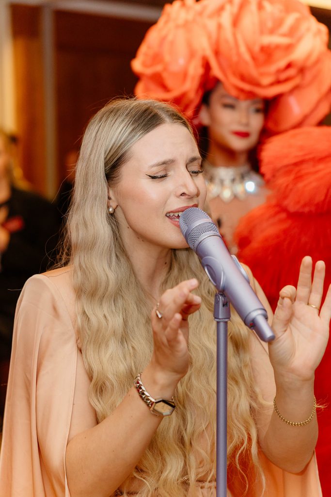 Nach den inspirierenden Gesprächen verwöhnte ein Flying Dinner die Gäste mit kulinarischen Köstlichkeiten, begleitet von Musik und einer Live Performance, die den Abend in eine festliche und inspirierende Atmosphäre tauchten. Zum Abschluss erhielten wir eine Goodie Bag, die den Abend perfekt abrundete. Darin befand sich ein Wedding-Connect-Buch mit allen Dienstleistern, die am Event teilgenommen hatten, sowie hochwertige Produkte von den Kooperationspartnern. Ein kleines, aber feines Detail, das die Wertschätzung gegenüber den Gästen unterstrich und gleichzeitig eine wertvolle Inspirationsquelle für zukünftige Projekte darstellt.
